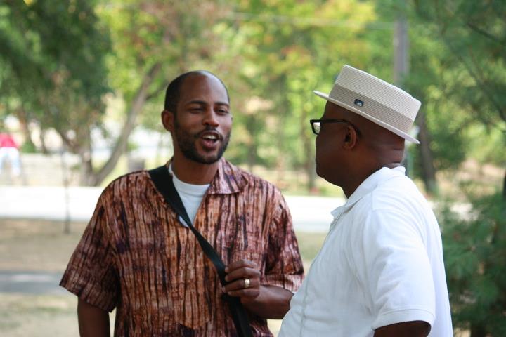 (PHOTO: Melanie Henderson) Yao Hoke Glover and Randall Horton chopping it up.