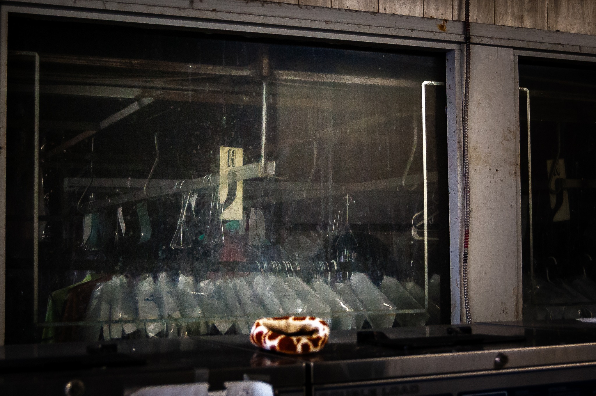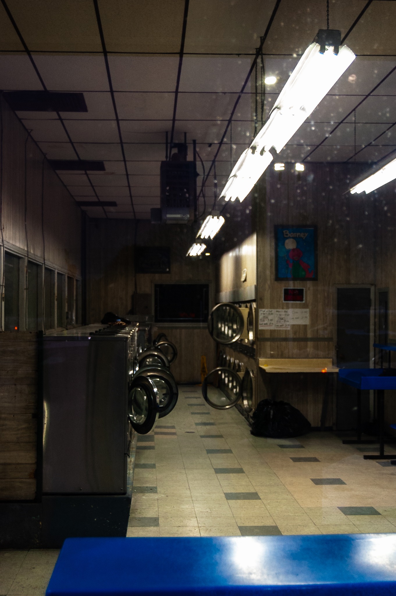 At the laundromat, I was surrounded by the fluorescent lights, the swirling motion of clothes in the machines, and the haze of detergent mist. The atmosphere was perfect for some moody shots, and the D40’s simplicity made it a joy to capture the reflections, textures, and shadows that would have been lost on a more automated camera.